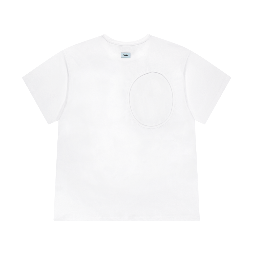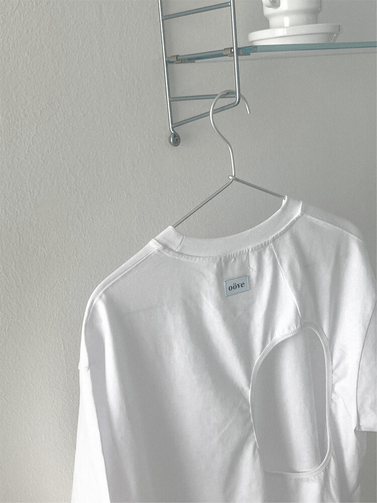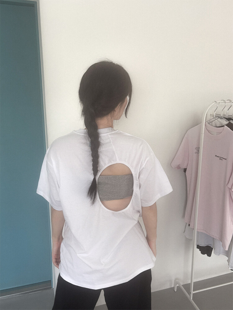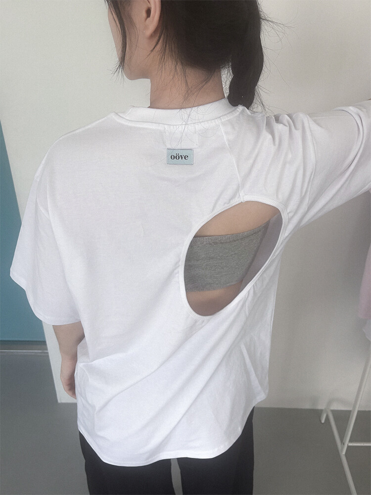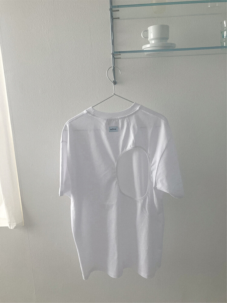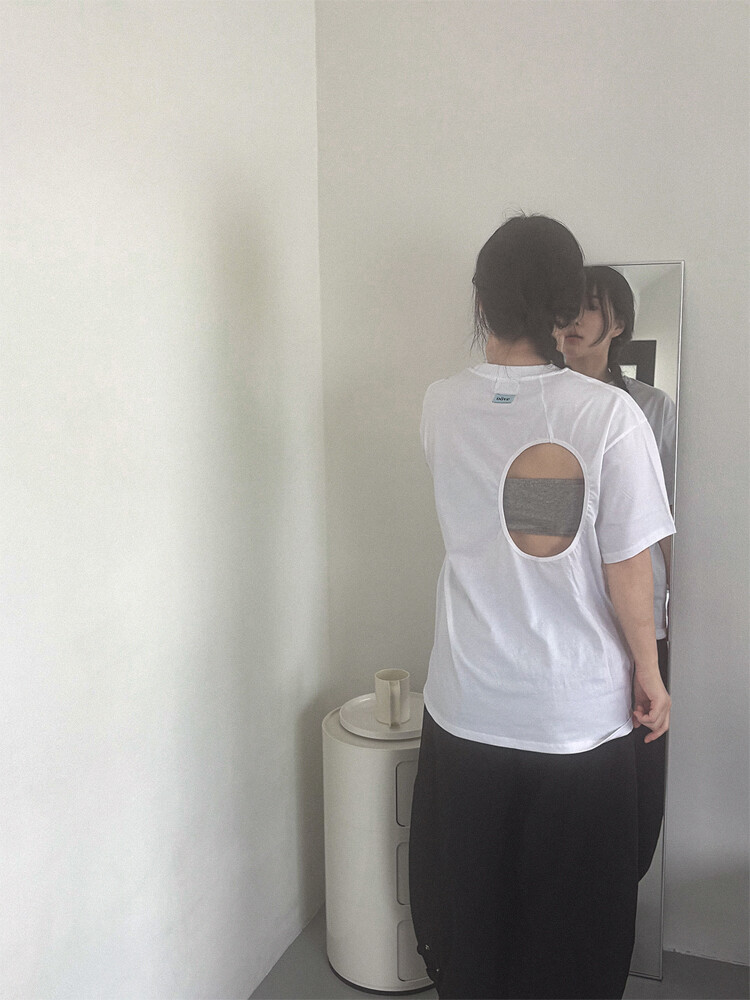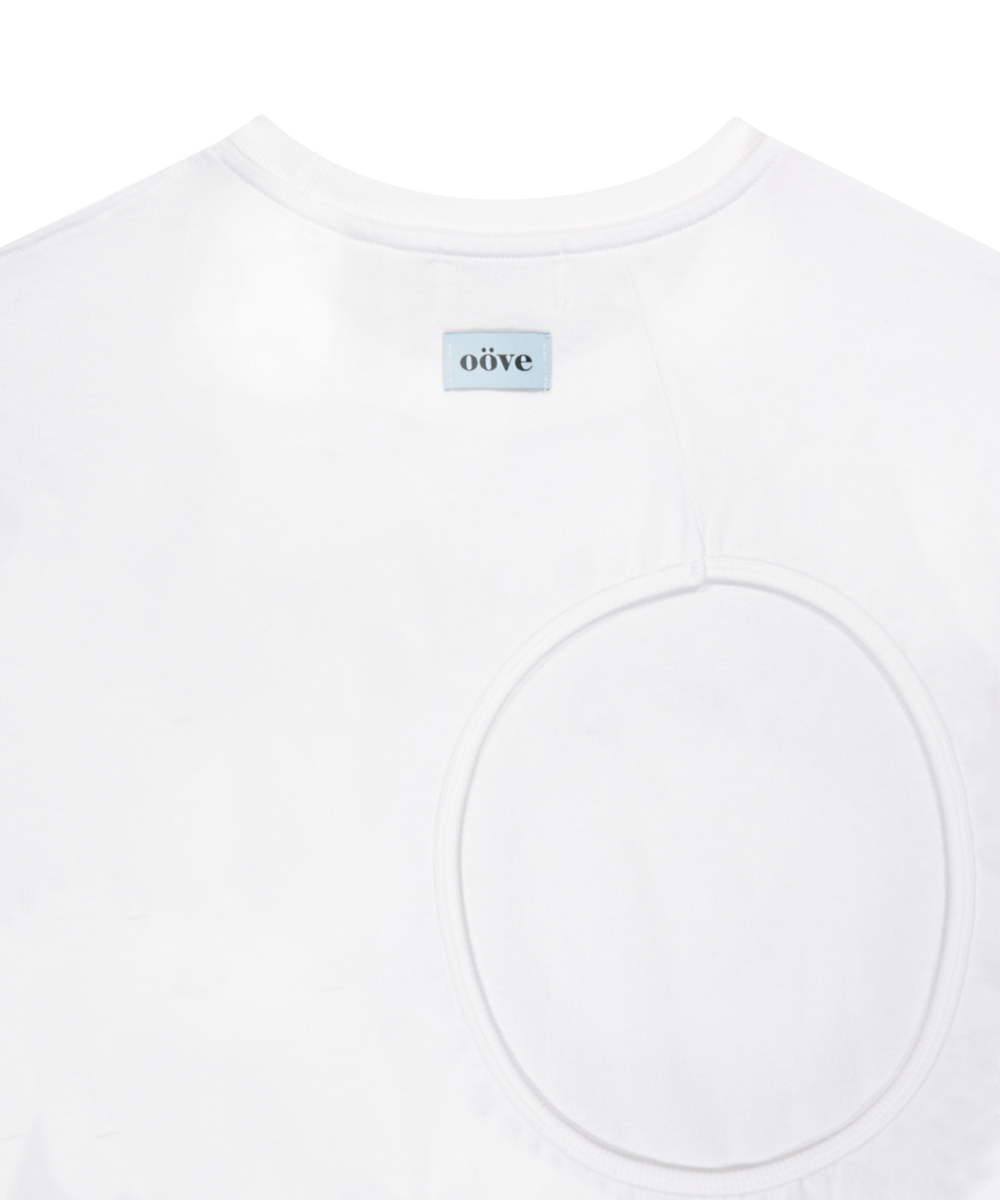 등판 한쪽에 절개된 원형 컷아웃 디자인으로